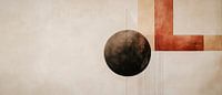 Een harmonieus samenspel van geometrische vormen en zachte kleuren betovert de kijker. De grote, donkere cirkel contrasteert indrukwekkend met de warme, gestructureerde elementen in aardse roodtinten. Deze moderne compositie is ideaal voor een woonkamer, waar het een uitnodigende en creatieve sfeer creëert.