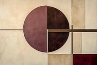 Abstracte geometrie in zachte aardetinten combineert harmonieus tot een boeiend vormenspel. De grote, ronde vlek in dieprood springt in het oog en geeft de compositie een levendige dynamiek. Dit kunstwerk is ideaal voor een moderne woonkamer en creëert een uitnodigende en stijlvolle sfeer die uitnodigt om te blijven hangen.