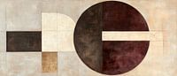 Een harmonieuze compositie van heldere geometrische vormen ontvouwt zich in zachte aardetinten. De combinatie van ronde en rechthoekige elementen creëert dynamiek en evenwicht. Dit moderne kunstwerk is perfect voor een stijlvolle woonkamer, waar het een gesprek kan stimuleren en een uitnodigende sfeer kan creëren.