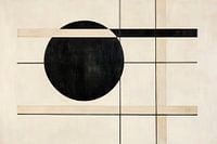Met krachtige contrasten tussen de diepzwarte cirkel en de zachte lijnen van de lichtgekleurde balken creëert dit kunstwerk een harmonieus evenwicht. De geometrische vormen stralen tijdloze elegantie uit en voegen een vleugje stijl en creativiteit toe aan een moderne woonkamer. Ideaal om gesprekken te stimuleren en de aandacht te trekken.
