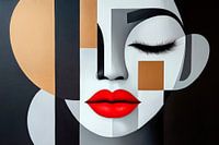Een krachtig samenspel van geometrische vormen en levendige kleuren ontvouwt zich in dit kunstwerk. De felrode lippen en de zachte contouren van het gezicht trekken onmiddellijk de aandacht. Dit moderne stuk is ideaal voor de woonkamer, waar het kan schitteren als een fascinerend gespreksonderwerp en een sfeer van elegantie kan creëren.