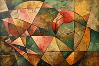Dit indrukwekkende kunstwerk toont een flamingo in een gestileerde, geometrische voorstelling gedomineerd door aardse kleuren. De slimme schikking van vormen en het warme kleurenpalet creëren een harmonieuze en toch opvallende compositie. Ideaal voor kunstliefhebbers die een modern en natuurlijk accent aan hun interieur willen toevoegen. Dit schilderij voegt een kalme elegantie toe aan elke kamer en past perfect in een stijlvolle, natuurlijke omgeving.