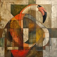 Dit indrukwekkende kunstwerk toont een flamingo in een gestileerde, geometrische voorstelling gedomineerd door aardse kleuren. De slimme schikking van vormen en het warme kleurenpalet creëren een harmonieuze en toch opvallende compositie. Ideaal voor kunstliefhebbers die een modern en natuurlijk accent aan hun interieur willen toevoegen. Dit schilderij voegt een kalme elegantie toe aan elke kamer en past perfect in een stijlvolle, natuurlijke omgeving.