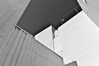 De reductie van de kleurtonen tot klassiek zwart-wit geeft het architectonische motief…