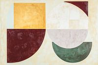Geometrische vormen en harmonieuze kleuren vormen samen een tijdloze compositie die rust en evenwicht uitstraalt. De warme groene tinten en aardse nuances nodigen uit om te blijven hangen en passen perfect bij een moderne woonsfeer. Ideaal voor de woonkamer, waar creativiteit en elegantie elkaar ontmoeten.