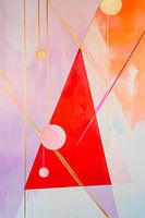 Hier ontvouwt zich een sfeervolle geometrische compositie met levendige roodtinten en zachte pasteltinten. De krachtige driehoeken en harmonieuze cirkels stralen energie en dynamische beweging uit. Deze fascinerende melange is perfect voor een moderne woonkamer, waar het conversatie stimuleert en creatieve inspiratie aanmoedigt.