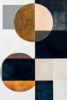 Met zijn harmonieuze geometrieën en krachtige kleurenpalet van diepblauwe en gouden tinten straalt dit kunstwerk moderne elegantie uit. De contrasten tussen matte en glanzende oppervlakken springen in het oog en voegen dynamiek toe. Ideaal voor in de woonkamer of op kantoor, wordt het een stijlvol gespreksonderwerp en brengt het eigentijdse flair in elke kamer.