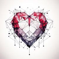 Unieke Geometrische hart rood/paars schilderij met een moderne en abstracte stijl. Met prachtige kleurtinten en een uniek ontwerp maakt dit tot een stijlvolle fotoprint die prachtig staat in elke ruimte.