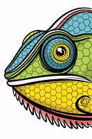 Deze kleurrijke en gedetailleerde close-up van een kameleon springt direct in het oog dankzij zijn opvallende geometrische patronen en speelse kleurgebruik. Het ontwerp combineert levendige tinten geel, blauw, groen en rood om een visueel fascinerend kunstwerk te creëren. Ideaal als opvallend accentstuk in een moderne woonkamer of een creatieve werkruimte, straalt dit ontwerp zowel energie als artistieke flair uit. De unieke mix van textuur en levendige kleuren maakt het een perfecte keuze voor liefhebbers van moderne en digitale kunst.