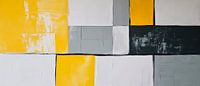 Met levendige gele tinten die doen denken aan de zon, contrasteren koele grijstinten en zuiver wit in een harmonieus vormenspel. Deze moderne compositie voegt frisse energie toe aan elke kamer en inspireert tot creativiteit. Perfect voor een kantoor of keuken, het creëert een stimulerende sfeer die uitnodigt om te werken of te genieten.
