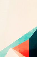 Hier ontvouwt zich een harmonieus samenspel van vormen en kleuren, waar zacht mintgroen en gedurfd rood elkaar ontmoeten. De minimalistische geometrische elementen geven de kamer een modern tintje en stralen creativiteit uit. Perfect voor een kantoor of woonkamer waar inspiratie en stijl hand in hand gaan.