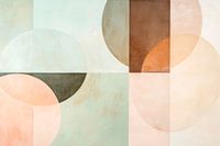 Zachte, harmonieuze kleuren versmelten met gevoelige vormen en brengen een rustgevende energie in de kamer. De vloeiende, ronde lijnen contrasteren met duidelijke geometrische patronen en creëren een moderne elegantie. Dit kunstwerk is perfect voor de woonkamer, waar het een uitnodigende sfeer creëert en gesprekken stimuleert.