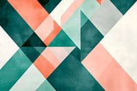Een harmonieus samenspel van zachte mint- en koraalkleuren ontvouwt zich in geometrische vormen die doen denken aan moderne kunst. Deze fascinerende compositie brengt een gevoel van frisheid en creativiteit in de woonkamer, waar het een gesprek kan stimuleren en een uitnodigende sfeer kan creëren. Perfect voor een stijlvolle en energieke omgeving!