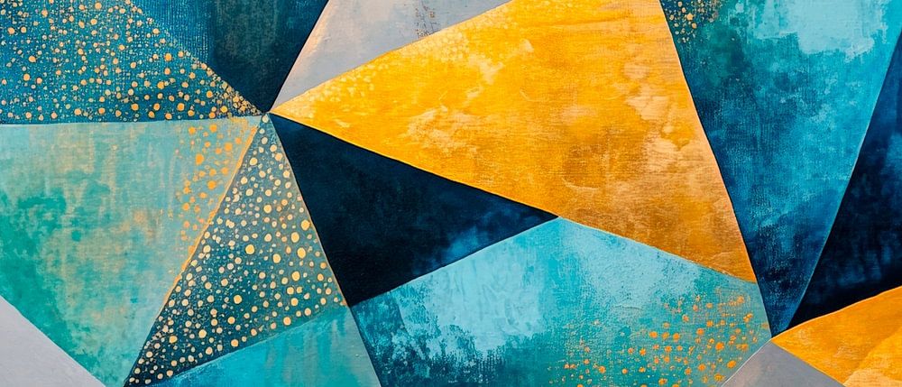 Geometrische vormen in rijk blauw en helder goud dansen harmonieus over het doek en voegen een dynamische energie toe aan elke kamer. De gedurfde kleuren en strakke lijnen creëren een moderne sfeer die bijzonder effectief is in een woonkamer of kantoor en creativiteit stimuleert.