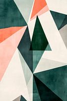 Oogverblindende geometrische vormen in zachte aardetinten en frisse groentinten geven de kamer een modern tintje. De harmonieuze combinatie van scherpe randen en vloeiende oppervlakken creëert een spannende dynamiek. Ideaal voor de woonkamer, waar het een creatief accent legt en rust en inspiratie in gelijke mate bevordert.