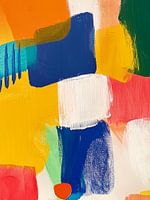 Dit abstracte werk toont een harmonieuze mix van grote geometrische kleurvlakken in blauw, geel en wit. De gedurfde schikking en intense kleuren brengen een moderne, artistieke sfeer over. De texturen van de penseelstreken geven het schilderij diepte en beweging, terwijl de heldere structuur voor evenwicht zorgt. Ideaal voor minimalistische of moderne interieurs.