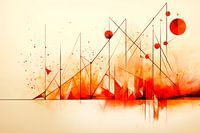Minimalistische kunst met geometrische vormen. Het abstracte ontwerp toont een herfsttafereel in rustgevende kleuren.