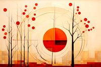 Minimalistische kunst met geometrische vormen. Het abstracte ontwerp toont een herfsttafereel in rustgevende kleuren.