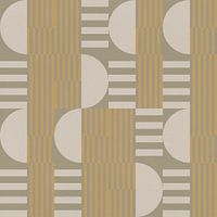 Koop dit abstracte kunstwerk Geometrische kunst in retrostijl. Cirkels en strepen in olijfgroen en geel nr. 2 van Dina Dankers op canvas, aluminium dibond, (ingelijste) fotoprint, behang en ArtFrame, op maat geprint in Fine-Art kwaliteit.