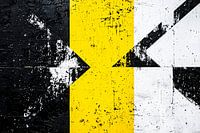 Dit opvallende kunstwerk is een krachtig samenspel van geometrische vormen, kleuren en texturen. Met zwarte en witte contrasterende vlakken en een heldere gele tint die het midden domineert, creëert het ontwerp een dynamische en energieke uitstraling. Perfect voor moderne interieurs, het brengt een gedurfde en eigentijdse sfeer in elke ruimte. Het robuuste, verweerde effect voegt een laag van diepte en karakter toe, waardoor het werk zowel industrieel als artistiek aanvoelt. Ideaal voor liefhebbers van abstracte kunst en unieke wanddecoratie.