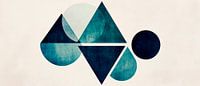 Een harmonieus samenspel van geometrische vormen in zachte blauw- en grijstinten ontvouwt zich voor de kijker. De gevarieerde opstelling van cirkels en driehoeken geeft de ruimte een moderne elegantie. Perfect om de creatieve flair van een kantoor of woonkamer te benadrukken en tot nadenken aan te zetten.