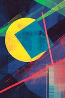 In een spel van levendige kleuren en geometrische vormen smelten helder geel, zachte blauwtinten en dynamische lijnen samen tot een harmonieuze chaos. Deze moderne compositie wekt creatieve gedachten en energie op, ideaal voor een creatief huis of een inspirerend kantoor. De gedurfde expressie bevordert een gevoel van innovatie en frisheid.