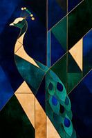 Geometrische pauw in rijke kleuren van Poster Art Shop