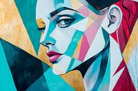 Een fascinerend samenspel van kleuren en geometrische vormen ontvouwt zich in deze moderne compositie. De opvallende gelaatstrekken van de afgebeelde persoon stralen zowel rust als kracht uit, terwijl de contrasterende tinten een levendige sfeer creëren. Dit kunstwerk is ideaal voor een woonkamer, geeft de kamer een artistiek tintje en zet aan tot discussie.