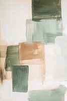 Dit ontwerp met abstracte vormen en zachte kleuren voegt een vleugje verfijning en rust toe aan elke ruimte. Het ontwerp combineert vierkante en rechthoekige blokken in neutrale kleuren zoals lichtgroen, beige, en wit, wat zorgt voor een minimalistische en moderne uitstraling. Deze harmonie van aardetinten past perfect in een kantoor of slaapkamer, waar een kalme sfeer belangrijk is. De eenvoudige lijnen en het gebruik van subtiele contrasten maken het veelzijdig en aantrekkelijk voor wie op zoek is naar een stijlvolle, ingetogen inrichting. Dit kunstwerk geeft je ruimte een serene en moderne look, die gemakkelijk integreert in verschillende interieurstijlen.