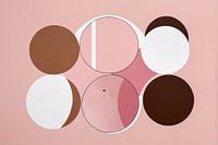 Dit minimalistische ontwerp valt direct op door zijn eenvoudige maar krachtige vormen. De cirkels in verschillende tinten roze, bruin en wit creëren een harmonieus en gebalanceerd geheel. Het spel van licht en schaduw zorgt voor een subtiele dynamiek, terwijl de afwezigheid van drukke details de rust en sereniteit van het ontwerp versterkt. Dit werk past perfect in moderne interieurs, met name in slaapkamers en kantoren, waar rust en balans een belangrijke rol spelen. Het ontwerp heeft een tijdloze uitstraling die het ideaal maakt voor liefhebbers van minimalistische kunst en geometrische vormen. Of het nu gaat om een subtiel accent in een kamer of een centraal kunstwerk, dit ontwerp trekt gegarandeerd de aandacht zonder overweldigend te zijn.