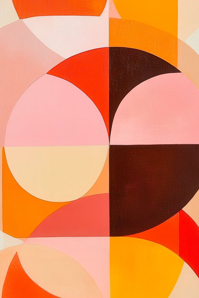 Geometrische vormen dansen harmonieus samen in warme roodtinten en zachte pasteltinten. Deze artistieke compositie van halve cirkels en kwarten straalt een uitnodigende energie uit die elke kamer opfleurt. Perfect voor een woonkamer, creëert het een sfeer van creativiteit en gezelligheid die uitnodigt om te blijven hangen.