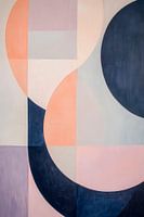 Zachte pasteltinten dansen harmonieus in een kunstig samenspel met diepe, donkere accenten. De combinatie van geometrische vormen en gebogen lijnen geeft elke kamer een moderne elegantie. Dit kunstwerk is ideaal voor een stijlvolle woonkamer of een creatieve studeerkamer en creëert een ontspannen en inspirerende sfeer.