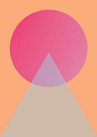 Geometrische vormen, minimalistisch. Een lichtgroene driehoek waarvan de kleur verloopt in de roze cirkel op de achtergrond. De roze cirkel verloopt weer in de zacht oranje achtergrond. Gradiënt, kleurverloop.