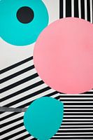 Een harmonieus samenspel van levendige kleuren en dynamische lijnen trekt op magische wijze de aandacht. De zachte, ronde vormen in roze en turquoise contrasteren slim met de opvallende zwarte en witte strepen en creëren een levendige sfeer. Ideaal als blikvanger in de woonkamer of creatieve werkkamer, waar ze inspiratie en energie kunnen bevorderen.