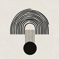 Een harmonieuze compositie ontvouwt zich in een samenspel van concentrische bogen en heldere lijnen. De zachte, gebogen vormen stijgen uit boven een sterke, eenvoudige cirkel die als een solide anker fungeert. Deze geometrische opstelling brengt een gevoel van balans en beweging over, alsof er een geheim ritme ontvouwt.