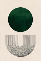 Een zacht contrast wordt onthuld in harmonieuze vormen: een diepgroene cirkel zweeft boven een elegante, gebogen band van fijne lijnen. Deze minimalistische compositie straalt een gevoel van rust en helderheid uit, terwijl de geometrische elementen een subtiele spanning creëren. Een stijlvolle fusie van kleur en vorm die uitnodigt tot meditatie.