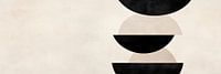 Er ontvouwt zich een harmonieus samenspel van vormen en kleuren: donkere halve cirkels combineren zachtjes met lichte oppervlakken, terwijl de subtiele contrasten tussen zwart en beige een rustig ritme creëren. Deze compositie straalt een tijdloze elegantie uit en nodigt de kijker uit om op te gaan in de diepe schaduwen en het zachte licht.