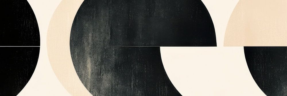 Drie harmonieus gerangschikte vormen spelen met licht en schaduw terwijl ze zich overgeven aan een dialoog van duisternis en lichtheid. Het krachtige contrast tussen diepzwart en delicaat beige creëert een mysterieuze sfeer. De gedurfde halve cirkels en volle cirkels nodigen de kijker uit om de balans tussen het zichtbare en het verborgene te verkennen.