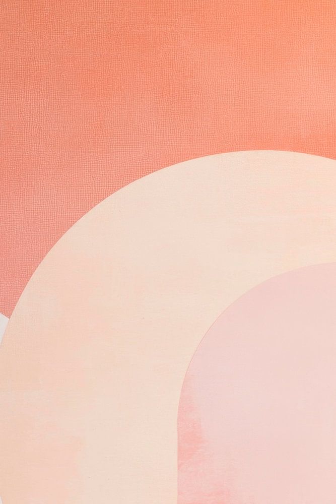 Een harmonieuze compositie van geometrische vormen ontvouwt zich in zachtroze en aardetinten. De grote, ronde silhouetten zijn elegant op elkaar gestapeld en creëren een rustgevende uitstraling. Dit minimalistische ontwerp straalt evenwicht en moderniteit uit en nodigt je uit om je onder te dompelen in de tijdloze esthetiek.