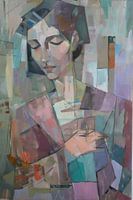Deze betoverende geometrische afbeelding van een vrouw combineert zachte pasteltinten met strakke lijnen om een harmonieuze en rustgevende compositie te creëren. De zachte gele, roze en blauwe tinten geven de afbeelding een warme en uitnodigende sfeer, terwijl de geometrische vormen diepte en complexiteit toevoegen. Ideaal voor moderne woonruimtes en kunstliefhebbers die op zoek zijn naar een stijlvolle en contemplatieve wanddecoratie. Dit kunstwerk brengt een verfijnde elegantie en tijdloze schoonheid in elk interieur.