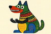Een vrolijke, grafische wolf met grote ogen en een tandrijke glimlach staat centraal, opgebouwd uit heldere vlakken en strakke contouren. Ritmische zigzagbanden en driehoekige motieven sieren rug en borst, terwijl ronde vormen en dikke zwarte lijnen het geheel samenbinden. De contrasterende kleuren geven energie en diepte zonder…
