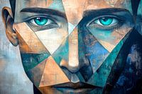 Een fascinerende compositie van geometrische vormen en levendige kleuren betovert de kijker. De betoverende blauwe ogen fonkelen als kostbare edelstenen en geven het geheel een intense diepte. Dit kunstwerk is ideaal voor een moderne woonkamer, waar het een gesprek kan stimuleren en een gevoel van stijl uitstraalt.