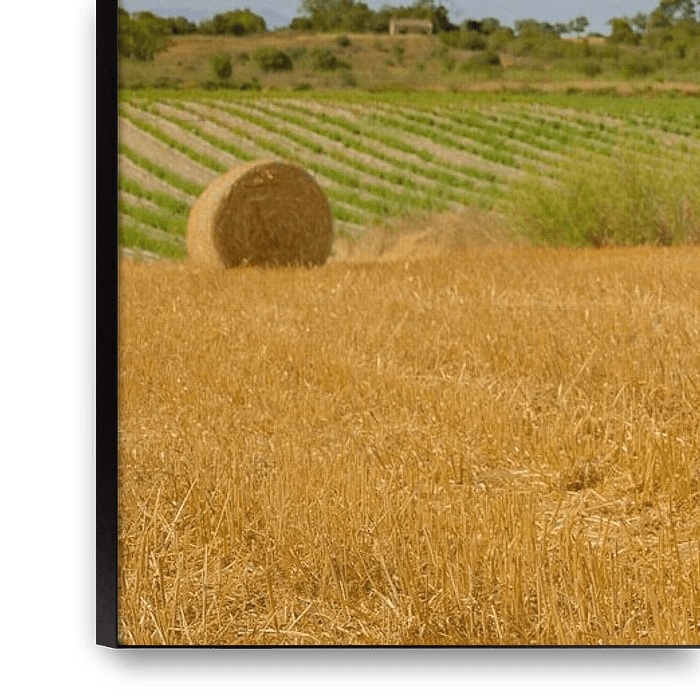 Koop de foto Geoogst veld met strobalen zomer herfst van Alex Winter als print op canvas, aluminium dibond, (ingelijste) fotoprint, behang en ArtFrame. Voor jou op maat geprint in Fine-Art kwaliteit.