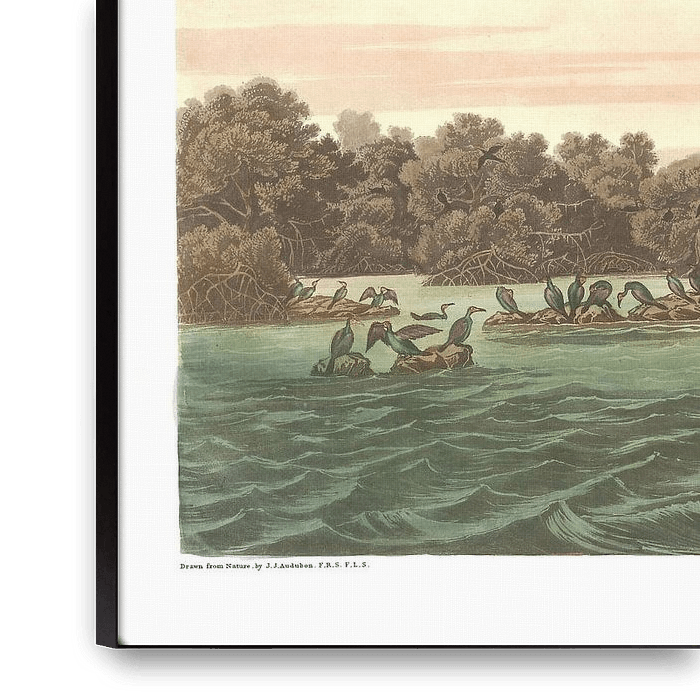 John James Audubon werd geboren op 26 april 1785 in Les Cayes, Santo Domingo, Frankrijk (nu Haïti). Van het landgoed van zijn vader in Pennsylvania maakte Audubon de eerste Amerikaanse experimenten met vogelbanden. Hij begon alle ornithologische dingen te verzamelen en potlood- en pasteltekeningen van vogels te maken. Toen zijn zelfvertrouwen als kunstenaar groeide, waagde hij zich aan aquarellen, het medium dat hij het vaakst zou gebruiken. Audubon werd een reizende kunstenaar, die af en toe leerlingen lesgeeft, maar altijd lokale vogels en hun natuurlijke habitat schildert. Zijn belangrijkste werk, een kleurenplaatboek getiteld The Birds of America (1827-1839), wordt beschouwd als een van de beste ornithologische werken ooit voltooid. Audubon stierf op 27 januari 1851 in New York City. Noot: Dit werk is ook zonder begeleidende tekst in de illustratie te verkrijgen. Neem hiervoor contact met ons op.