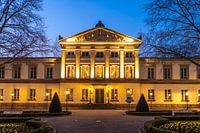 Aula der Georg-August-Universität in der Abenddämmerung, Göttingen, Nedersaksen, Duitsland | Georg August-Universität Göttingen Vergaderzaal bij schemering, Goettingen, Nedersaksen, Duitsland