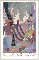 George Barbier - La Belle Indolente Illustratie uit FALBALAS ET FANFRELUCHES - Almanak van de huidige, voorbije en toekomstige mode voor de jaren 1922, 1923, 1924, 1925 en 1926.