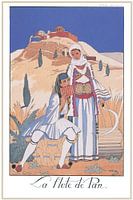 George Barbier - La Flûte de Pan Illustratie uit FALBALAS ET FANFRELUCHES - Almanak van de huidige, voorbije en toekomstige mode voor de jaren 1922, 1923, 1924, 1925 en 1926.