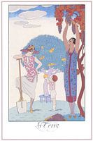 George Barbier - La Terre illustratie uit FALBALAS ET FANFRELUCHES - Almanak van de huidige, voorbije en toekomstige mode voor de jaren 1922, 1923, 1924, 1925 en 1926.