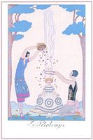 George Barbier - Le Printemps Illustratie uit FALBALAS ET FANFRELUCHES - Almanak van de huidige, voorbije en toekomstige mode voor de jaren 1922, 1923, 1924, 1925 en 1926.