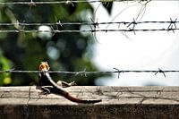 Zo ook deze mooie gekleurde hagedis. Hij zat daar…